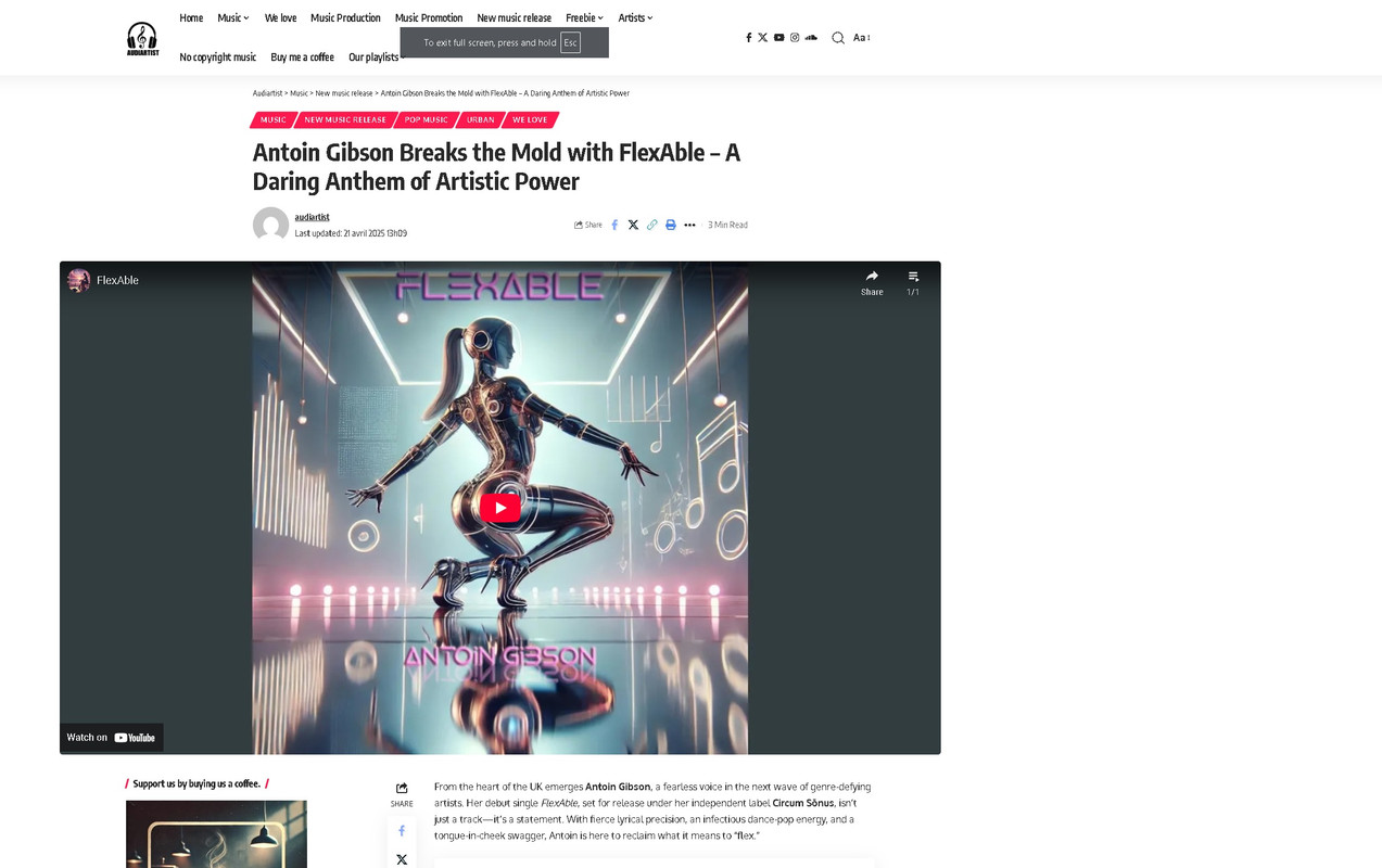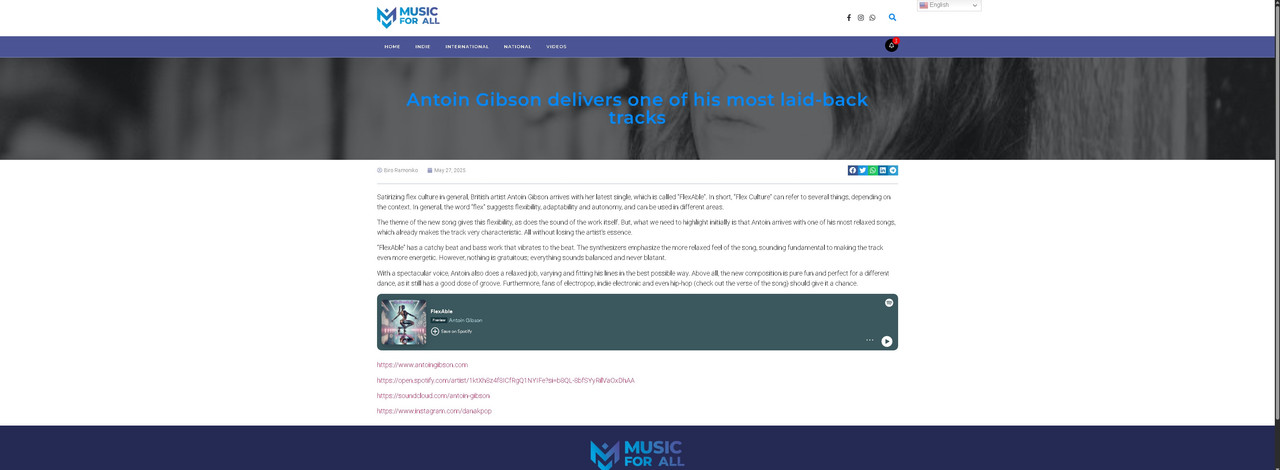Released under Circum Sonus, FlexAble is a genre-defying statement track — fusing club-ready dance pop with razor-sharp lyrical punch. With futuristic production, bold wordplay, and a robotic energy that commands attention, this track cements Antoin’s position as both a sonic shapeshifter and a lyrical mastermind.