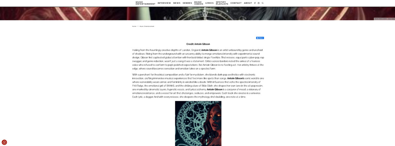 "Antoin Gibson stands as one of the most enigmatic and genre-defying forces to emerge from London’s ever-evolving independent music scene. As a self-produced artist, founder of the visionary label Circum Sonus Ltd, and lyrical disruptor with an unapologetic creative voice, Gibson has built a world that blurs the lines between music, performance art, and conceptual rebellion. With a portfolio that includes provocative works like Diss Topia, Serene Despair, FlexAble, Vessel of the Loveless, and the most recent Diss Qualification, Gibson has proven to be both a sonic architect and an intellectual provocateur. Their art doesn’t simply exist in sound, it exists in ideology, myth, and confrontation. Refusing the safe predictability of industry patterns, Gibson founded Circum Sonus Ltd as a creative sanctuary operating beyond the algorithms that shape mainstream consumption. It is within this liberated ecosystem that Gibson’s artistic philosophy thrives, blending dark pop seduction with biting satire and unflinching introspection. Their work is as much an act of rebellion as it is revelation, a declaration that art should remain untamed, theatrical, and endlessly questioning."